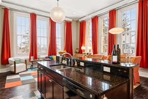 This thoughtfully designed condo offers a bright and functional layout with large windows that bring in natural light and highlight the character of the historic Commons buildings. The living space is comfortable and inviting, perfect for relaxing, dining, or planning your next adventure.